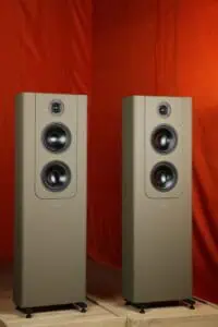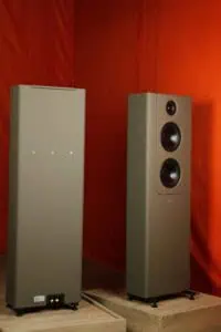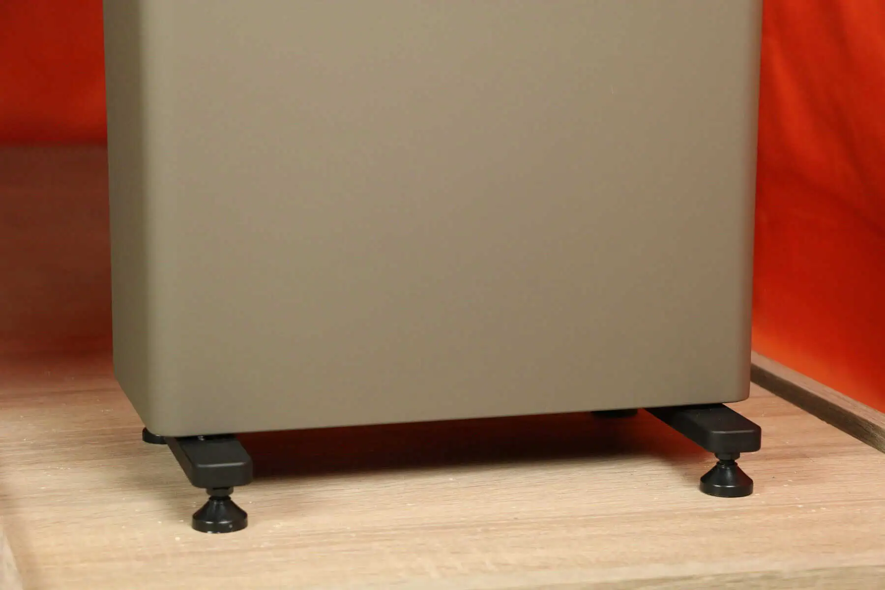 Platte jongens! Ontworpen om dicht tegen de muur te staan, waardoor er een strakke en krachtige basweergave vormt. Natuurlijk hebben wij ze ook even ‘hifi-gepositioneerd’, het laag staat. De twee 6,5-inch units met daarboven de soft-dome tweeter zorgen voor een rustige weergave. De basreflexpoort is naar beneden gericht.