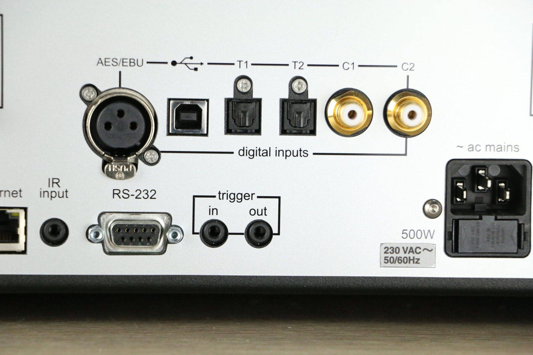 De No.5802 beschikt over één AES/EBU, twee coaxiale S/PDIF, twee optische S/PDIF en één asynchrone USB-ingang voor digitale bronnen.