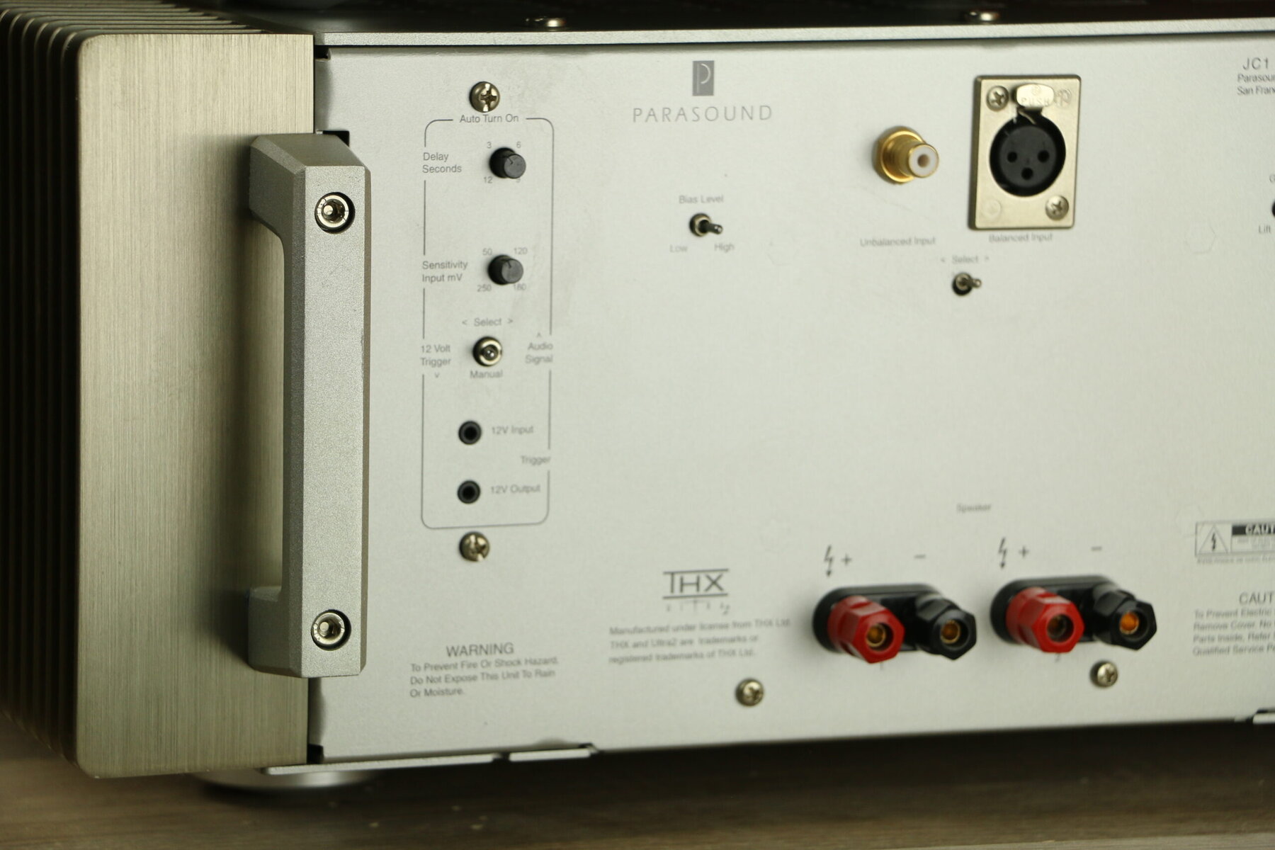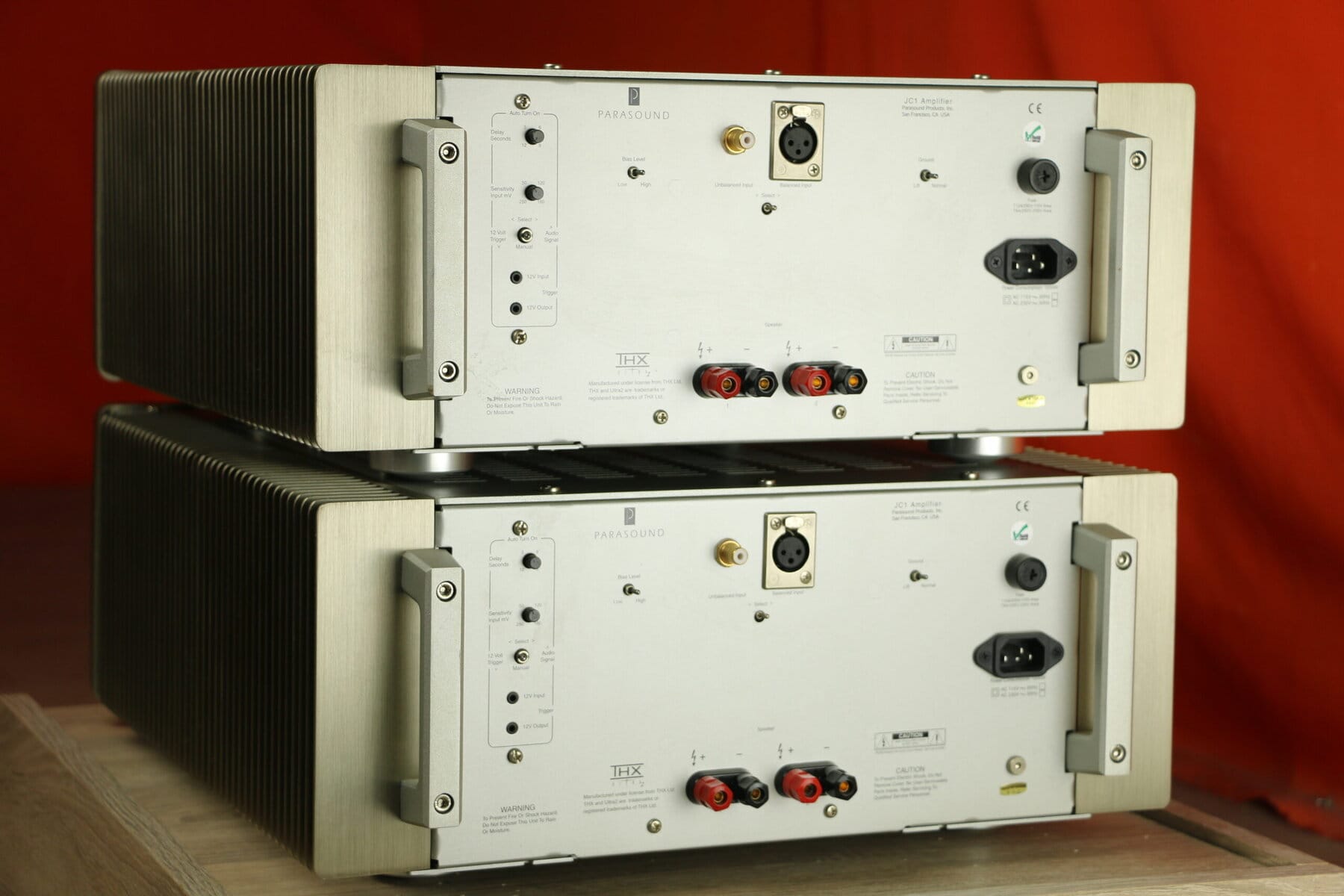 De Parasound JC1 mono eindversterkers zijn ontworpen in samenwerking met topontwerper John Curl, bekend uit de high-end audiowereld. Het ontwerp richt zich op maximale transparantie, snelheid en vermogen. Met een ultra-lage vervorming (slechts 0,03%) leveren ze 400 watt bij 8 ohm, en meer bij lagere impedanties. De JC1 maakt gebruik van zorgvuldig geselecteerde MOSFET’s en hoogwaardige interne bedrading. De behuizing is van massief aluminium, voor stevigheid en koeling. Handgebouwd in Californië.