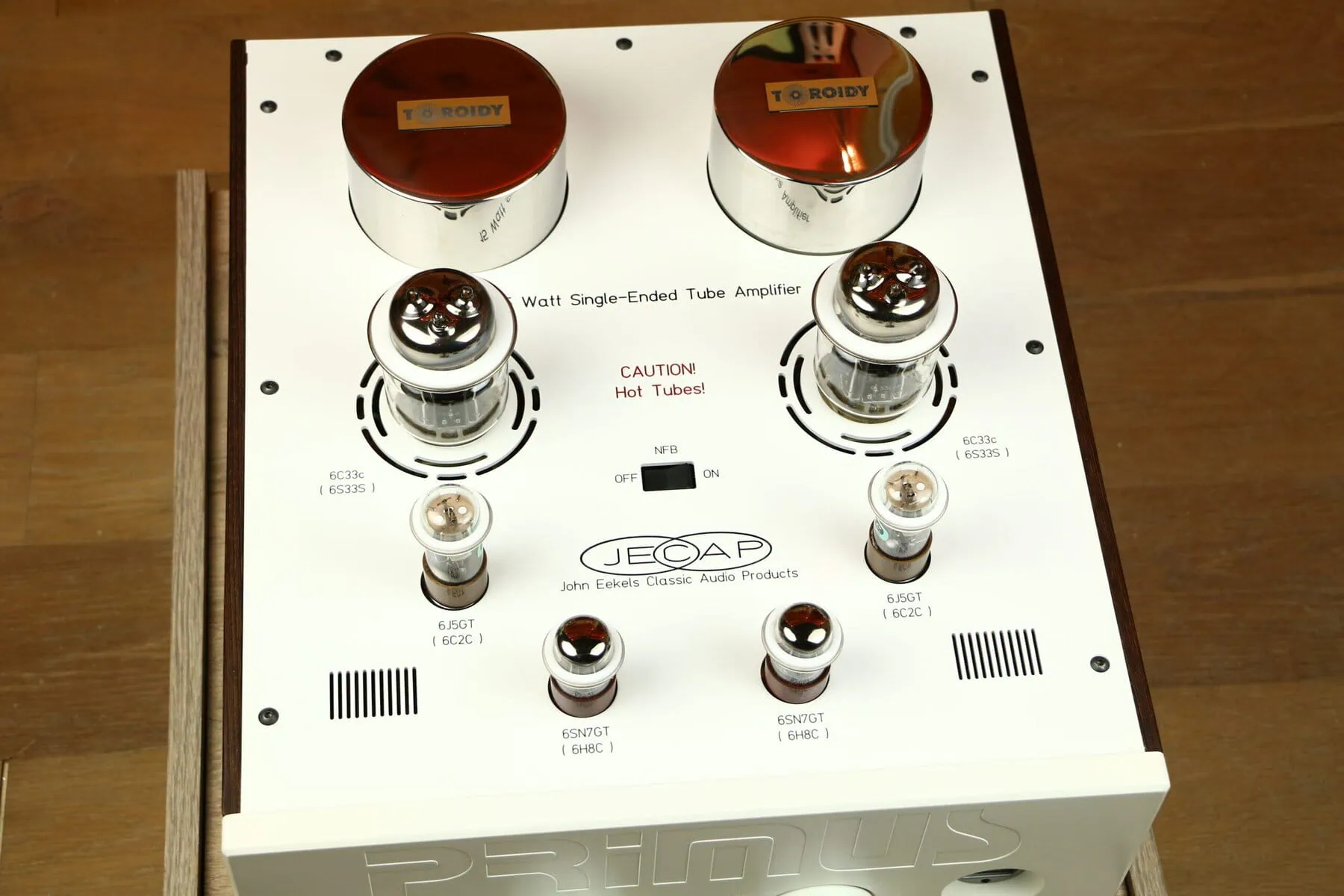 Deze klasse-A geschakelde Single-Ended versterker is het levenswerk van meesterbouwer John Eekels, en is een money-no-object-missie op buizengebied. Het betreft een uniek paradepaartje waarvan dus geen tweede bestaat. Deze versterker concurreert met de wereldtoppers uit de stal van Audio Note, LAMM, Air Tight en Zanden. Je staat er van versteld dat deze versterker met 2 x 15 Watt zo’n beetje alles kan aansturen. Ieder onderdeel is minutieus uitgekozen en over de hele wereld gesourced. Commercieel is een dergelijke versterker niet rendabel te produceren, aangezien minimaal boven de 30.000,00 zou uitkomen. De bouw heeft 10 maanden gekost, en op onderdelen is helemaal niets bespaard, John Eekels kon de beste kersen aan onderdelen plukken, en dat wereldwijd. Deze man is allereerst een vakman uit de uitzonderlijke klasse. Alleen aan onderdelen zit er al voor meer dan de vraagprijs in. Dit ding is absurd!